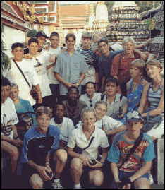 Our third overseas tour was to Thailand. Unfortunately, due to a shortage of available seats, we were obliged to divide the band into two groups one which went directly to Bangkok via Johannesburg, and another which went to Bangkok via Singapore. We then travelled as a complete group to Pattaya where we stayed at the Royal Cruise Hotel for a number of days. Two trips were undertaken to an Island in the gulf of Thailand. We then returned to Bangkok and stayed at the Menham hotel which is situated on the banks of the river running through the centre of Bangkok. The hotel=s landing jetty proved to be an ideal spot where we could practice our music everyday without disturbing anybody. Being part of the Indo-Chinese sub continent meant that there was an enormous diversity of places to visit. The river taxis proved to be an adventure in themselves